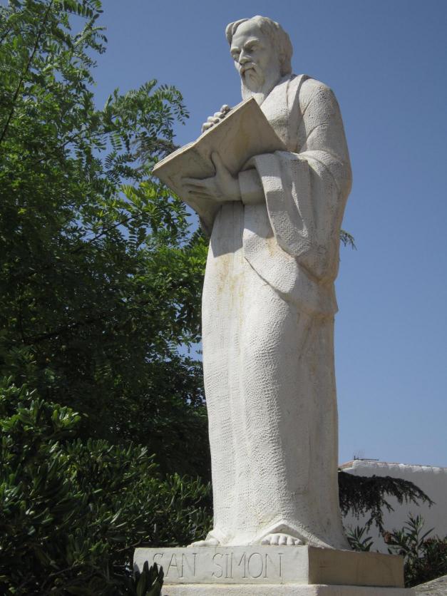 Exterior de la iglesia parroquial, estatua del apóstol San Simón,