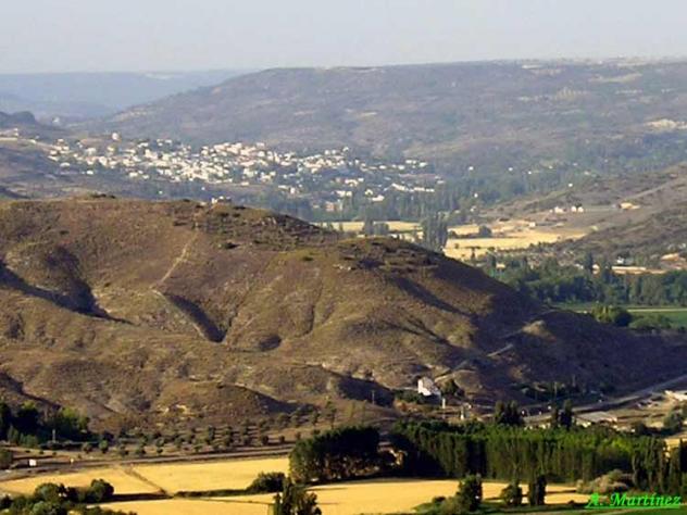 Pero la posición del pueblo parece algo extraña... Hay demasiada separación entre cerro y pueblo, ya que por la ladera opuesta debiera estar la Yesera, unas casas y la Escuela, y ésta ya integrada al pueblo ¿De acuerdo?