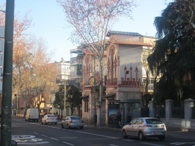 Parada de autobuses junto al arco de la Colonia de la Prensa,