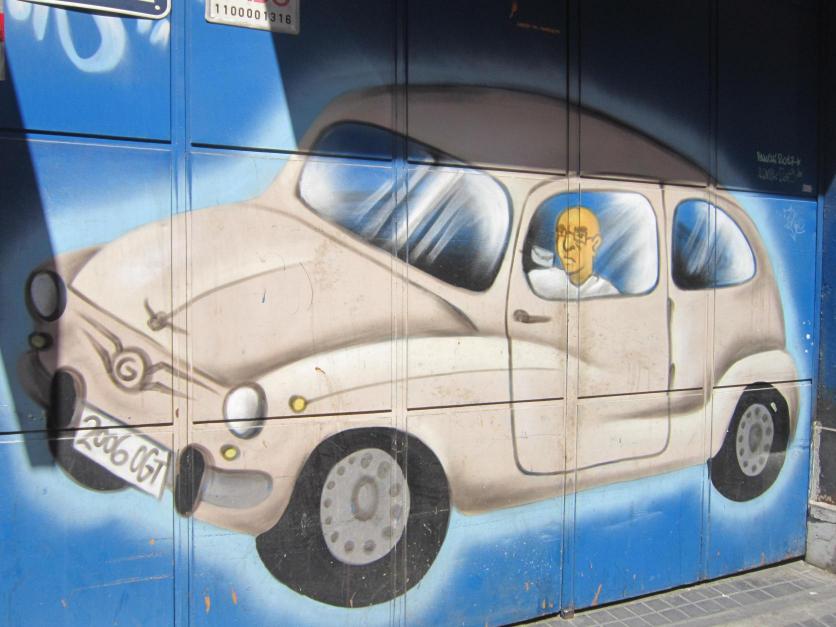 Pintura mural en la puerta de un garaje,