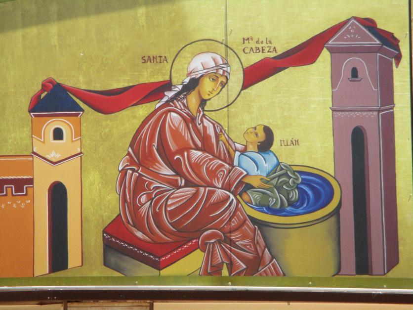 Santa María de la Cabeza en la fachada exterior de la parroquia de San Isidro Labrador,