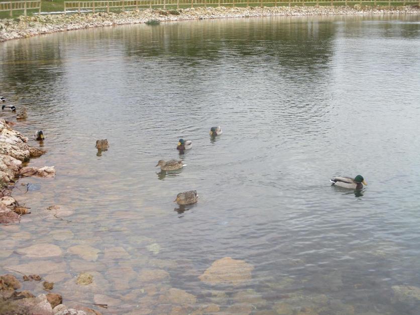 Estanque del parque de Las Cruces con un grupo de patos en sus aguas,