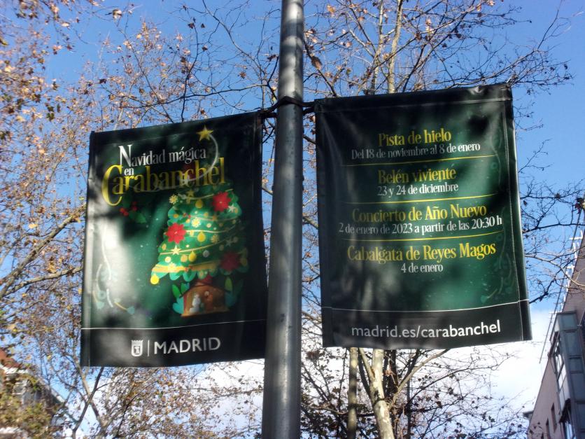 En una banderola colgada de las farolas en este distrito.