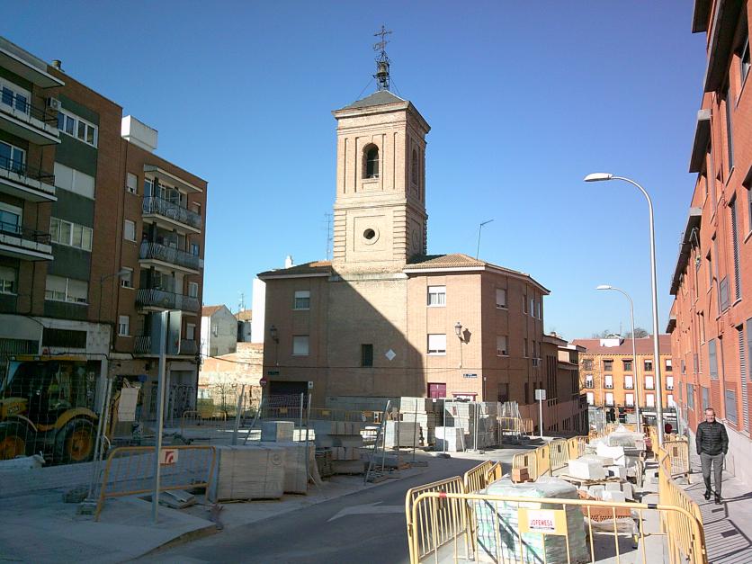Fachada trasera y campanario de la iglesia de San Pedro Apostol,