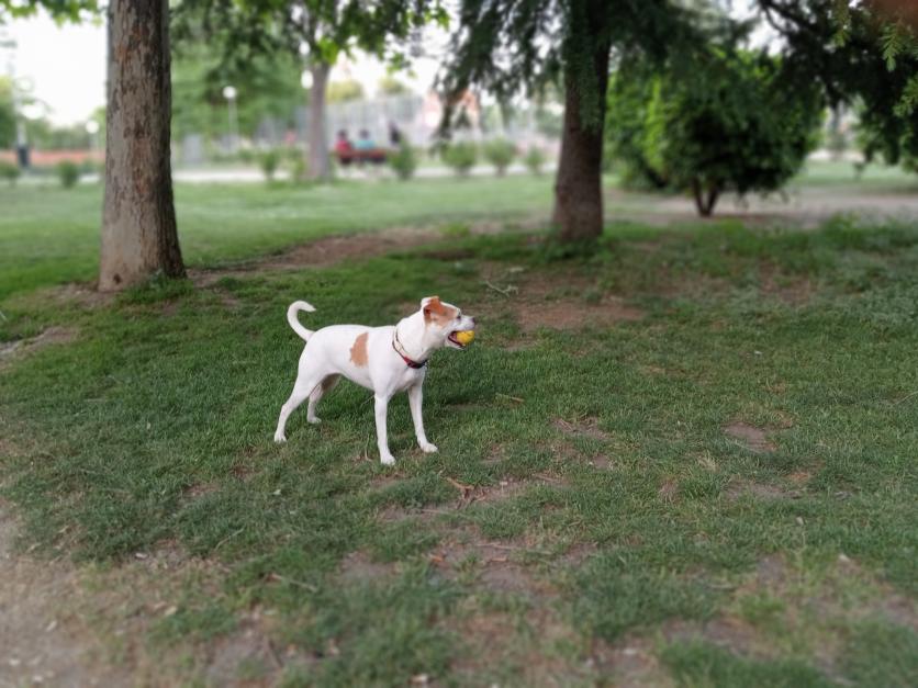 Jugando con la pelota bajo los árboles,