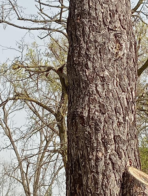 Pájaro carpintero en un pino,