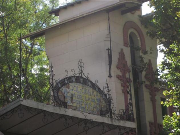 Detalle del arco de entrada a la Colonia de la Prensa,