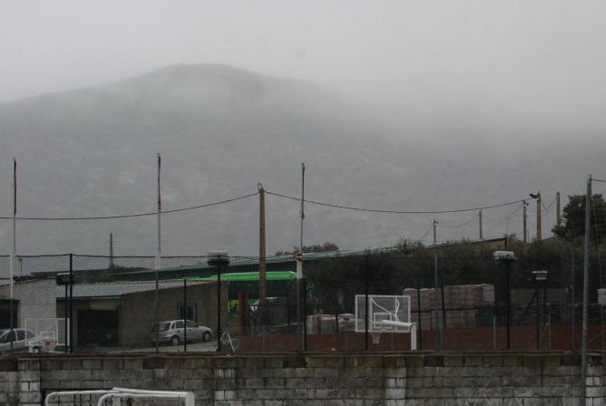 El cerro con niebla,