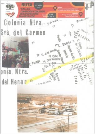 ruta calles, comercios y colegios desaparecidos en hortaleza y detalle del plano de col. del carmen