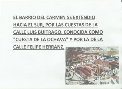 "el barrio del carmen se extendio hacia el sur por las cuestas de c/felipe herraez y luis buitrago" y más...