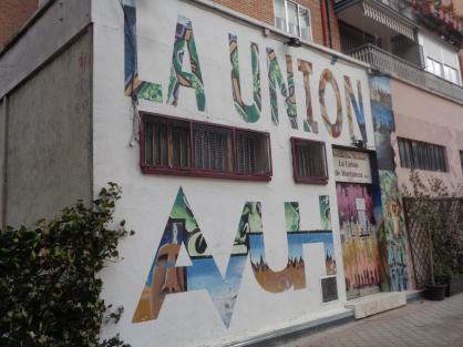 "fachada con rotulo pintado de la asociacion de vecinos de union de hortaleza. sta. susana 55. 2.020" y más...