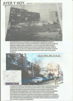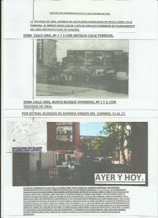 comparativa calle uria 33 y 35, con unas casas del b. del carmen rodeadas de muros y canalizaciones,
