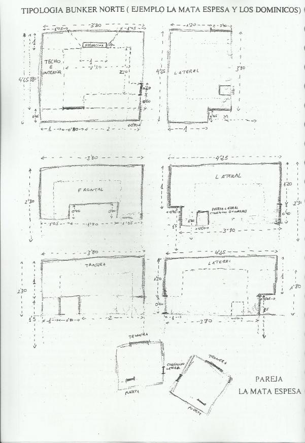 esquema y desarrollo de alzada de tipologia de fortines guerra civil como el de la mata espesa,
