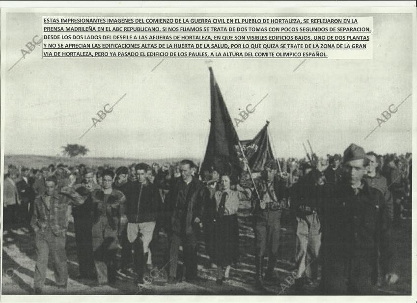 desfile 8 de octubre de 1.936 constitucion del batalon enrique lister. toma desde lado opuesto. zona actual de la gran
