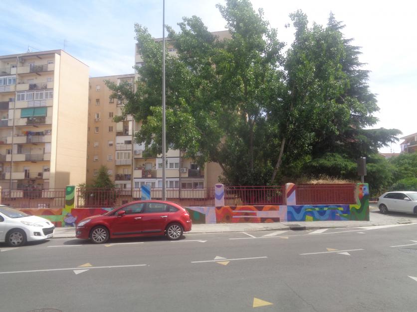 tapia con murales con motivos geometricos en el colegio san miguel avd. virgen del carmen. 2.024,