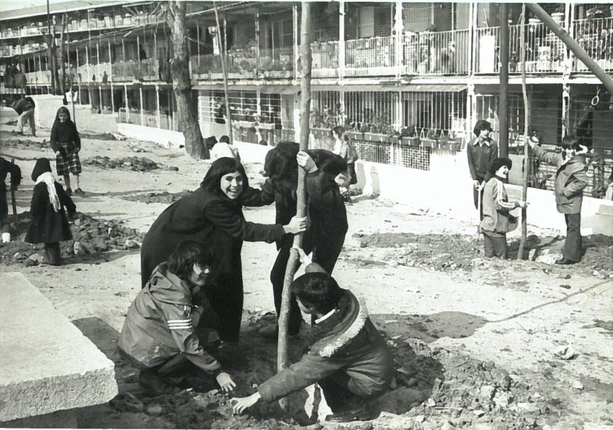 dia del arbol en hortaleza de 1.977. plantacion junto a la uva hortaleza,