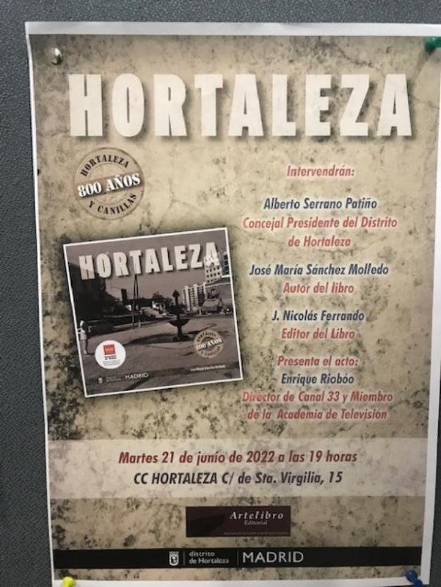 presentacion de libro sobre hortaleza. 21 de junio de 2.022. centro cultural de santa virgilia,