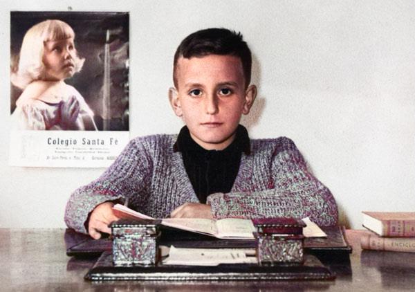 colegio de la santa fe. alumno en tipica foto de recuerdo de cada curso,