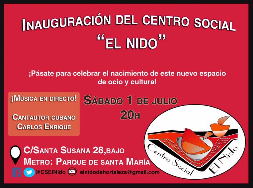 centro social el nido inauguracion y logotipo. uno de los principales apoyos culturales independient, HORTALEZA