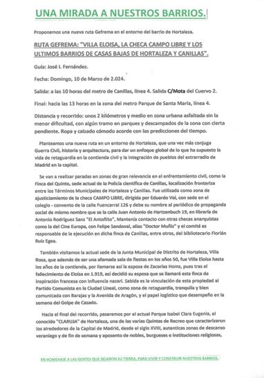 explicacion ruta los ultimos barrios de casas bajas de hortaleza y canillas. una mirada barrios,
