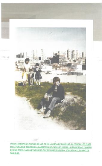 toma familiar en el barrio de canillas a finales de los 70 con las torres del poblado dirigido fondo,