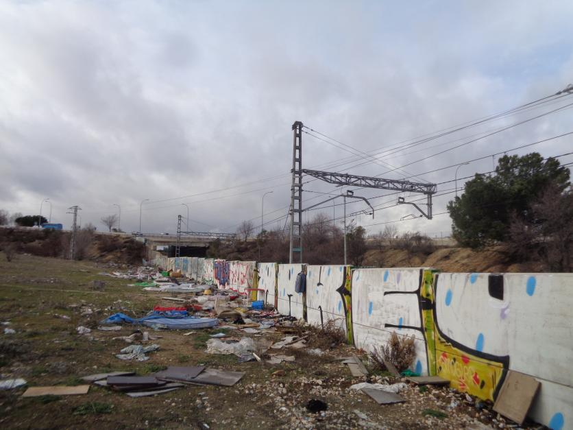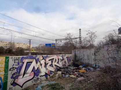 muro grafiteado lleno de basura en parte trasera finca de los almendros junto a vias. 2.020,