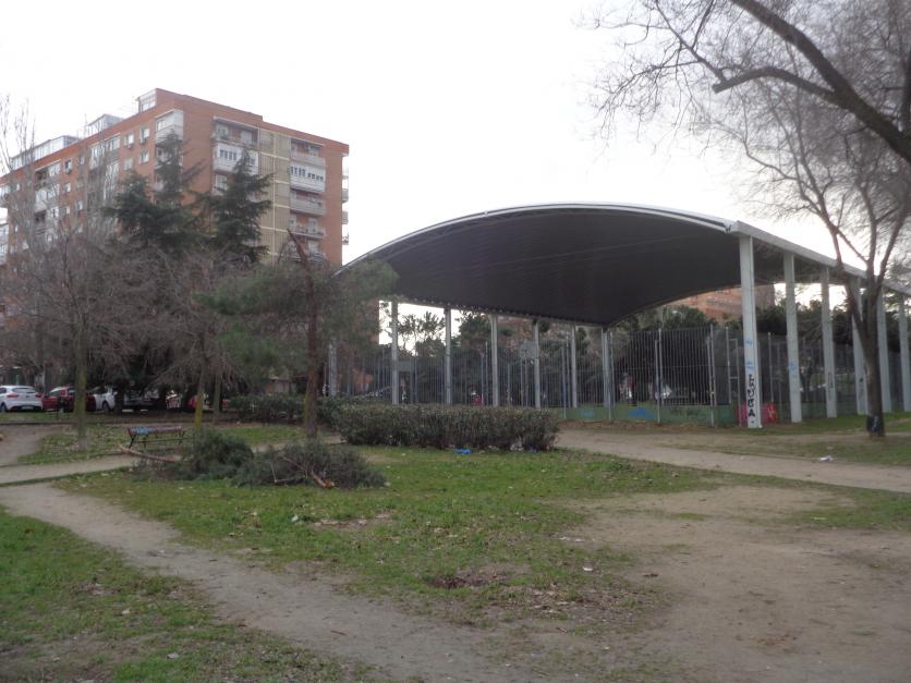 zona deportiva de calle santa adela que tras la nevada de filomena perdio su techo. 2.020,
