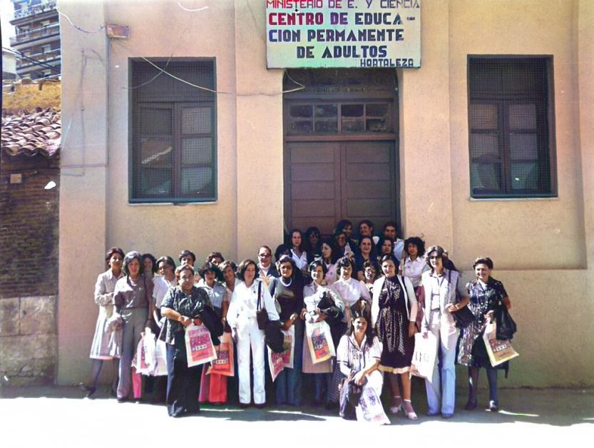 alumnos delante de la antigua sede del cepa de hortaleza. años 70. memoria de madrid,