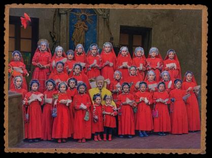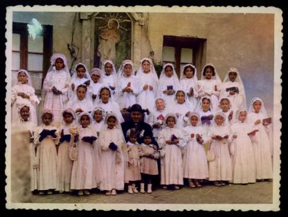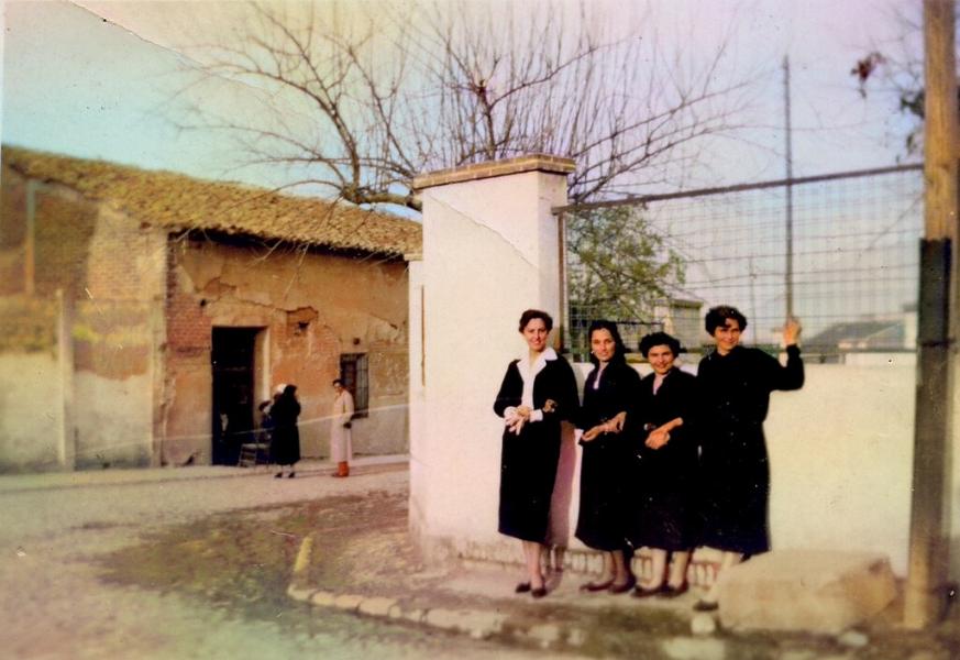 chicas junto al colegio de chicos del pueblo de hortaleza. años 50. memoria de madrid,