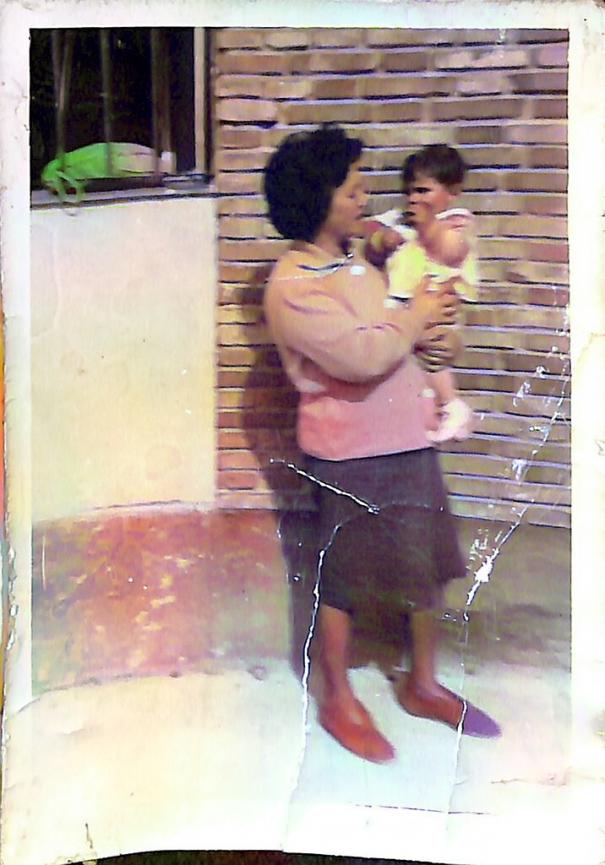 madre con niño en brazos en manoteras. años 60,