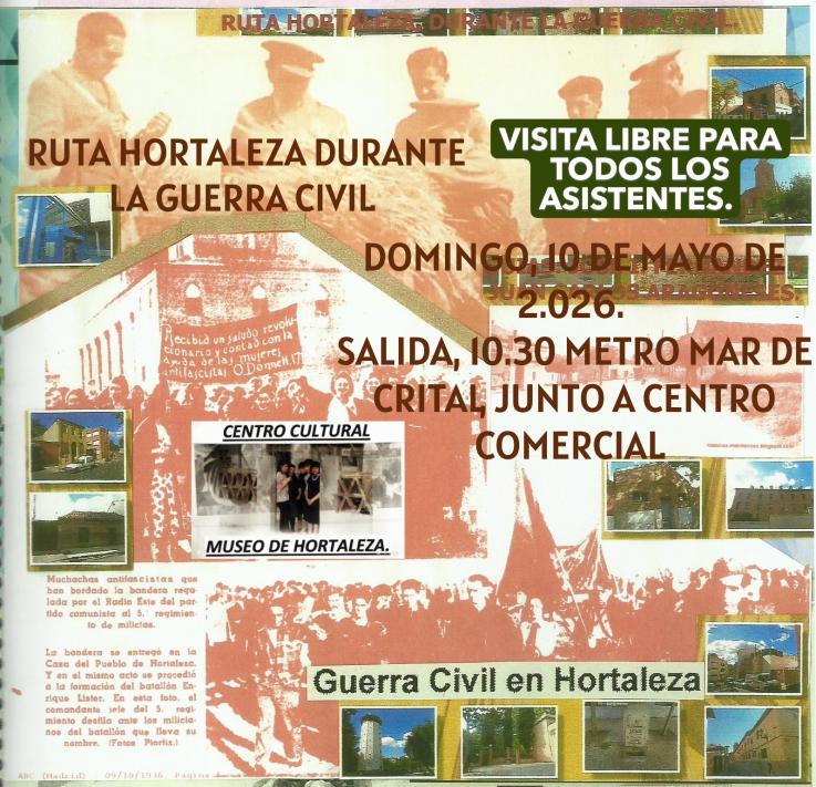 cartel de presentacion de ruta de 10 de mayo sobre hortaleza durante la guerra civil,