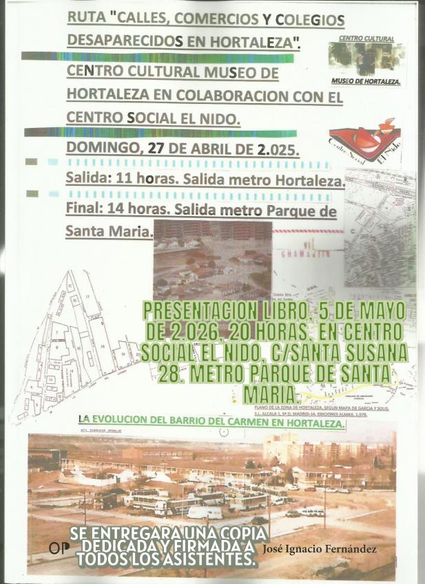 presentacion libro calles, comercios y colegios desaparecidos en hortaleza con hora. 5 de mayo de,