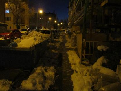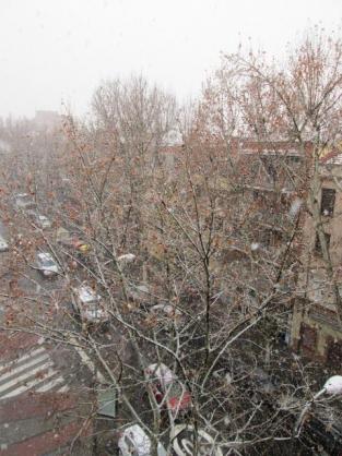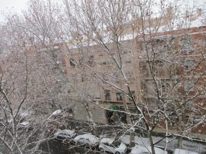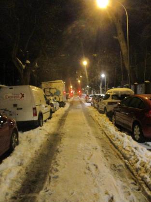 La calle Valmojado durante una fuerte nevada,
