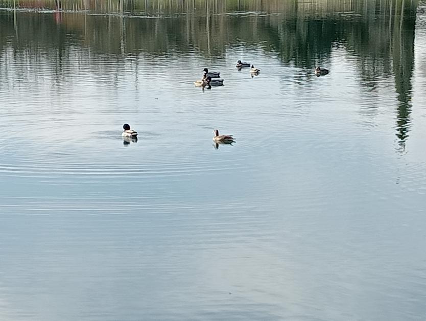 Un grupo de patos en el estanque,