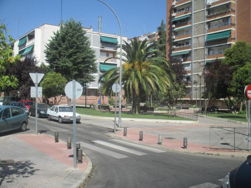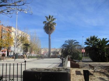 Plaza con palmera en la calle de los Monegros,