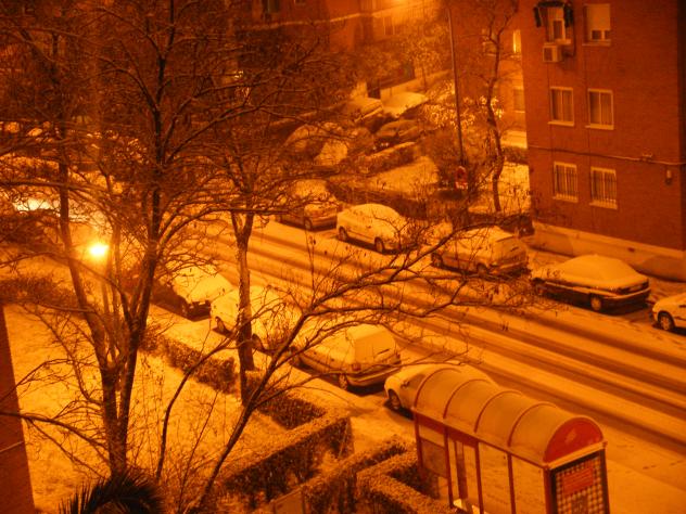 Nevada a la luz de las farolas,
