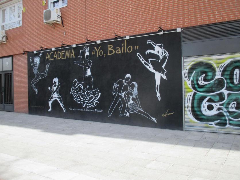 Bonita pintura mural en una escuela de danza,
