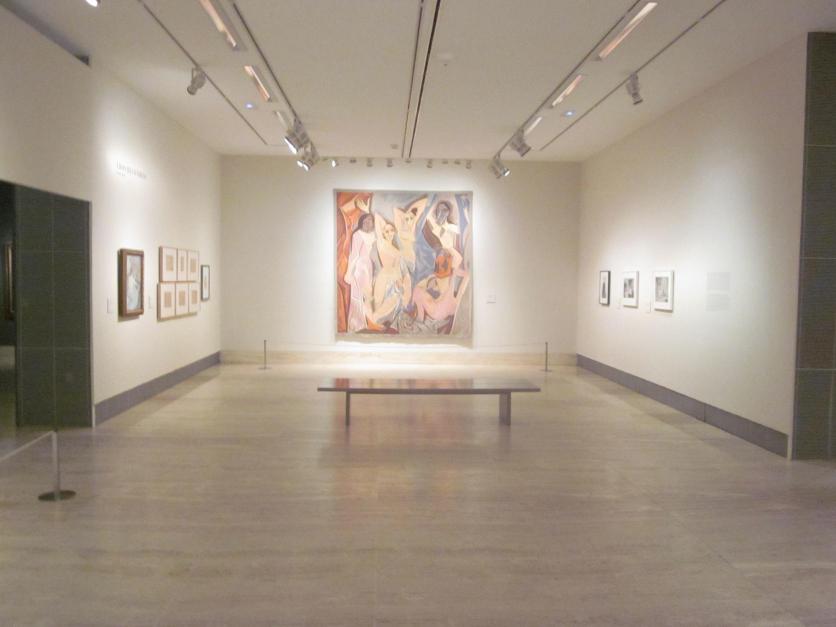 Sala de la exposición temporal de Picasso y Lautrec con el tapiz de Les demoiselles d´Avignon,