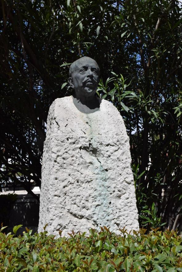 Su trabajo para la Biblioteca Nacional de una serie sobre el Quijote y otras colaboraciones, le hicieron merecedor de este busto en los jardines de la Biblioteca Nacional. Esta cabeza ignoro a quién representa, sin duda alguien importante de las letras castellanas, pero en el lugar no vi ninguna indicación que inofrmara. Si alguien lo sabe, por favor que nos lo diga. Gracias.