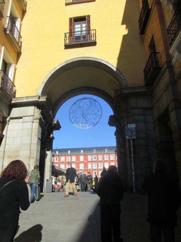 Arco de entrada a la Plaza Mayor con iluminación navideña,