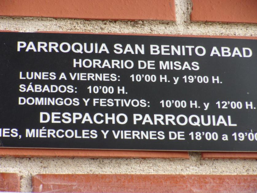 Horario de misas en la iglesia parroquial de San Benito Abad,