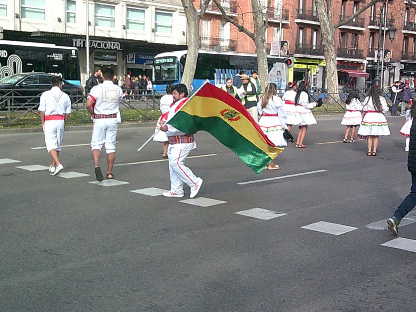 Ciudadanos de Bolivia desfilando con su bandera,
