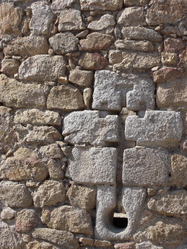 Detalle de una saetera o tronera o bocas de fuego, acondicionadas para desplegar la artillería. Lleva labrada la