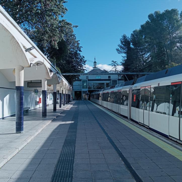 Tren en el andén de la estación de metro el Lago,