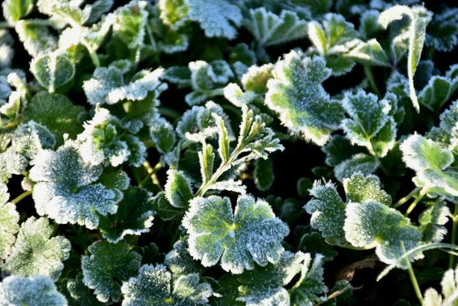 Hojas con escarcha,