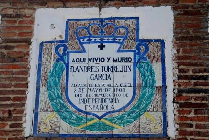 Placa en la casa de Andrés Torrejón,