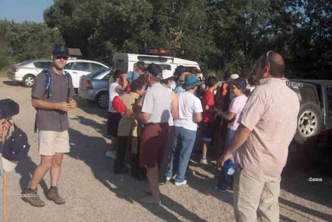 Reparto de bastones para la caminata 8-7-06.