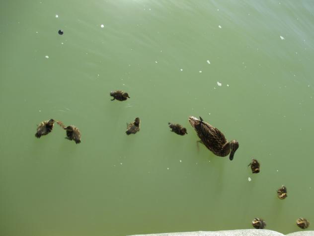 Pata y 9 patitos en el estanque del Retiro,