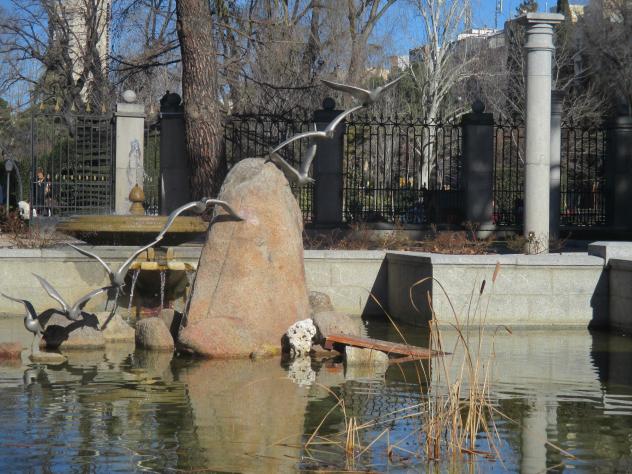 Parque del Retiro: fuente con gaviotas,