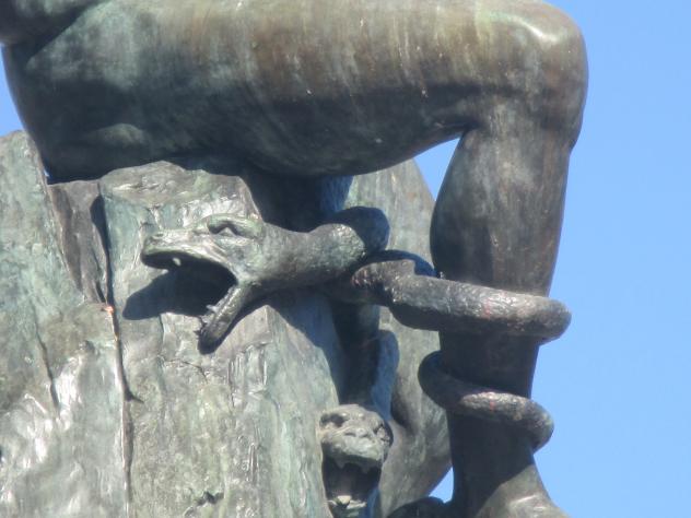 Serpiente enroscándose en el Ángel caído,